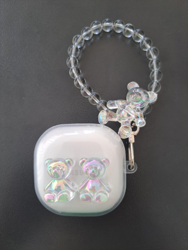 3D Bear Cute Cartoon Clear Capa de fone de ouvido para Samsung Galaxy Buds 2 Pro Live Invólucro para Galaxy Buds2 Pro Capa Fundas Proteção total com alça de pérola