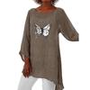 Mulheres primavera & verão fino camisa longa feminina casual 3/4 manga longa topo moda impressão plus size gola redonda camisa solta
