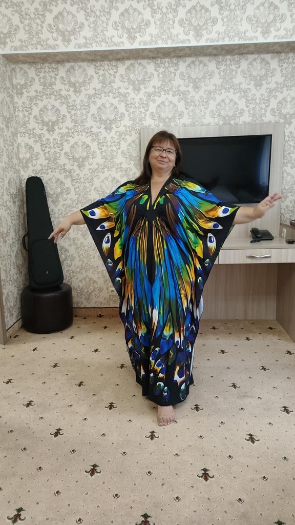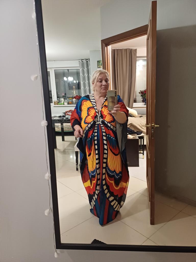 O vestido é super 👍, lindo, colorido 🔥. Cabe no meu tamanho 58 😍 ótimo