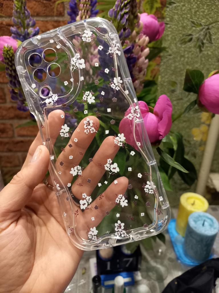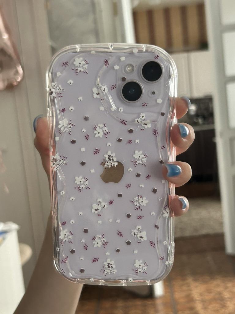 Creme onda curvado silicone brilhante caso macio floral impresso escudo do telefone móvel capa traseira para iphone samsung xiaomi