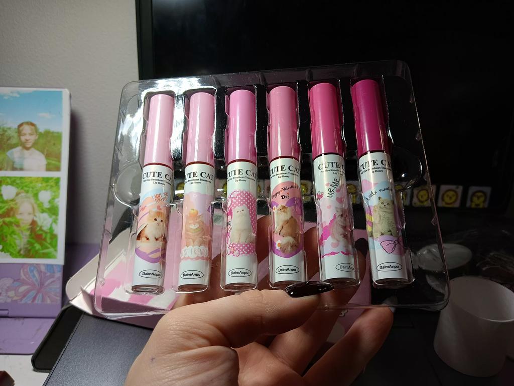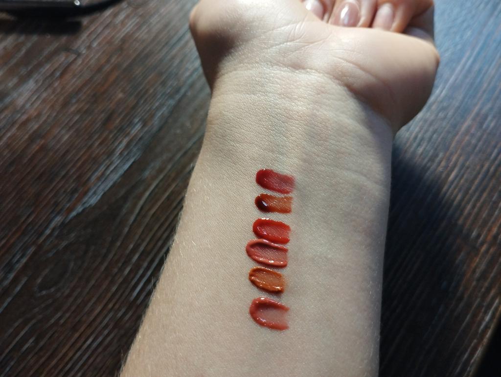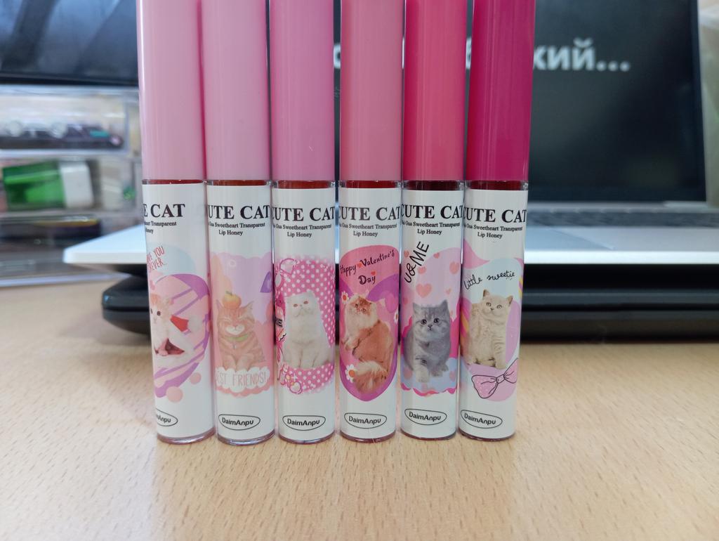 Brilhos fofos com um agradável aroma doce-melado. Eles tingem Adiciono: Após a aplicação, os batons têm um brilho molhado, mas com o tempo (10-15 minutos) secam e tornam-se batons matte com efeito tint Após uso prolongado da cor 01, foram descobertos brilhos grandes, bastante raros..