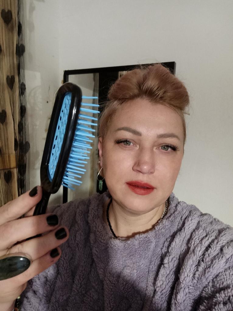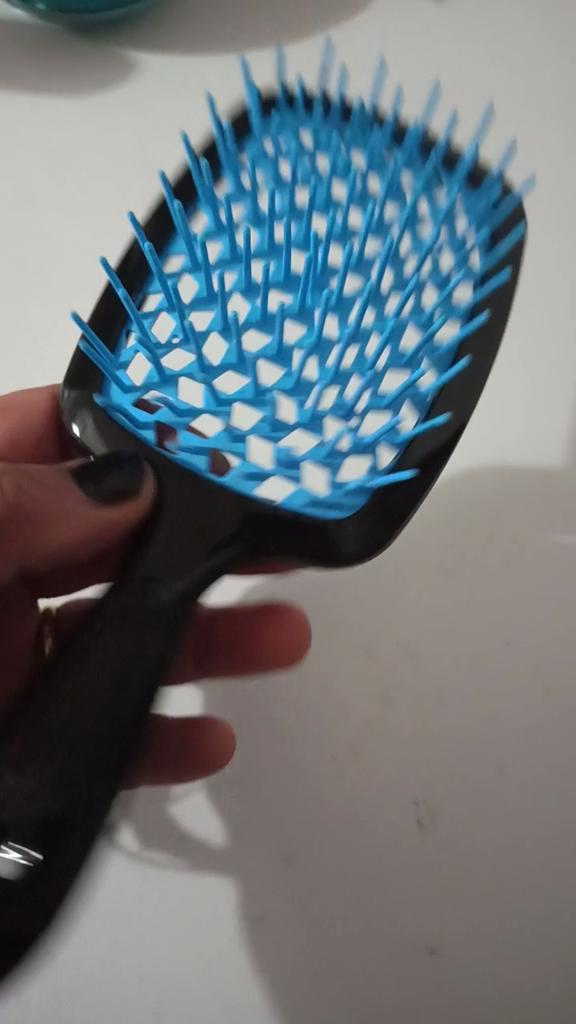 A todos, boa tarde, mostro-vos um excelente pente para cabelos que embaraçam. Eu tenho esse tipo de cabelo, especialmente na nuca. É confortável de usar, penteia bem e, ao mesmo tempo, é confortável, não quebra o cabelo.. Neste link, está disponível em várias cores, escolha a sua opção.. Eu recomendo este produto e guardo para você