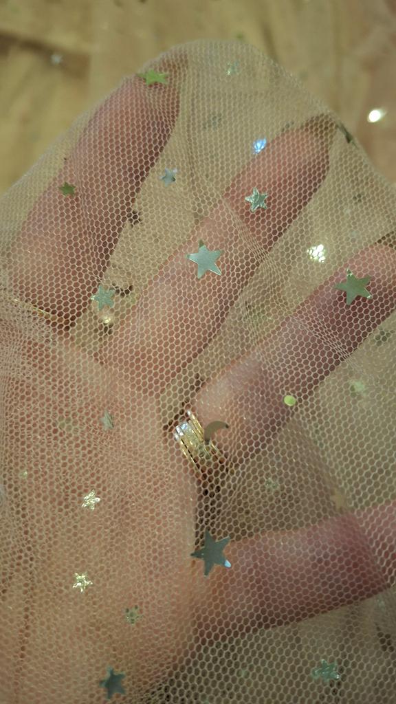 Qooth Feminino fada estrela lantejoulas malha tutu saia brilhante cintura elástica longo tule saia linha a qt2298