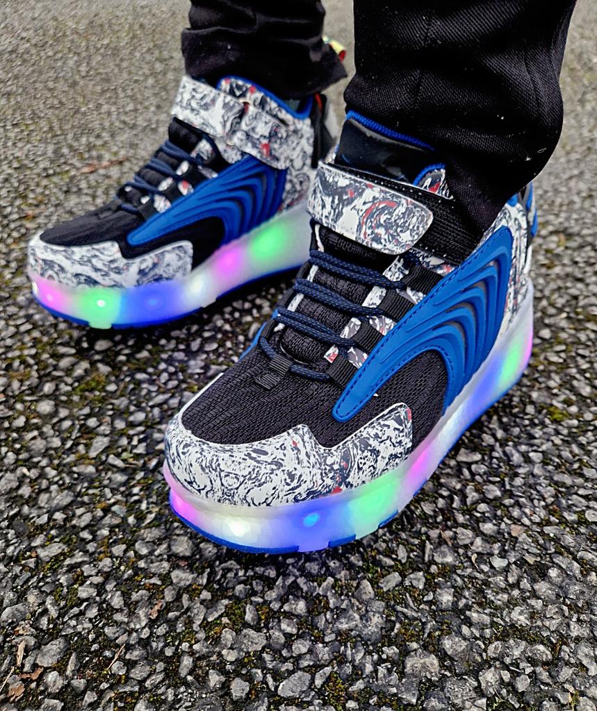 Eles são simplesmente incríveis e meu filho ficou super feliz com estes patins de rodinhas e tenho certeza que os pais também ficarão felizes com o preço. Podem ser usados como patins de rodinhas e como sapatos de caminhada, tudo o que você tem que fazer é fechar a janela na parte inferior. Eles também podem acender, o que é super legal, basta apertar o botão na tira. Vieram com cabo USB para que você possa carregá-los. Meu filho também amou a cor, o tamanho corresponde perfeitamente. A loja tem vários tamanhos e cores para escolher. A entrega demorou 3 semanas para a Irlanda. Boas Compras!