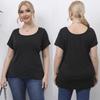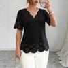 Camiseta feminina de tamanho grande, cor sólida, flor queimada, oca, borda ondulada, casual, gola redonda, manga curta