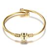 Ouro 26 letras de aço inoxidável trançado cabo fio titânio aço pêssego coração pulseira feminina