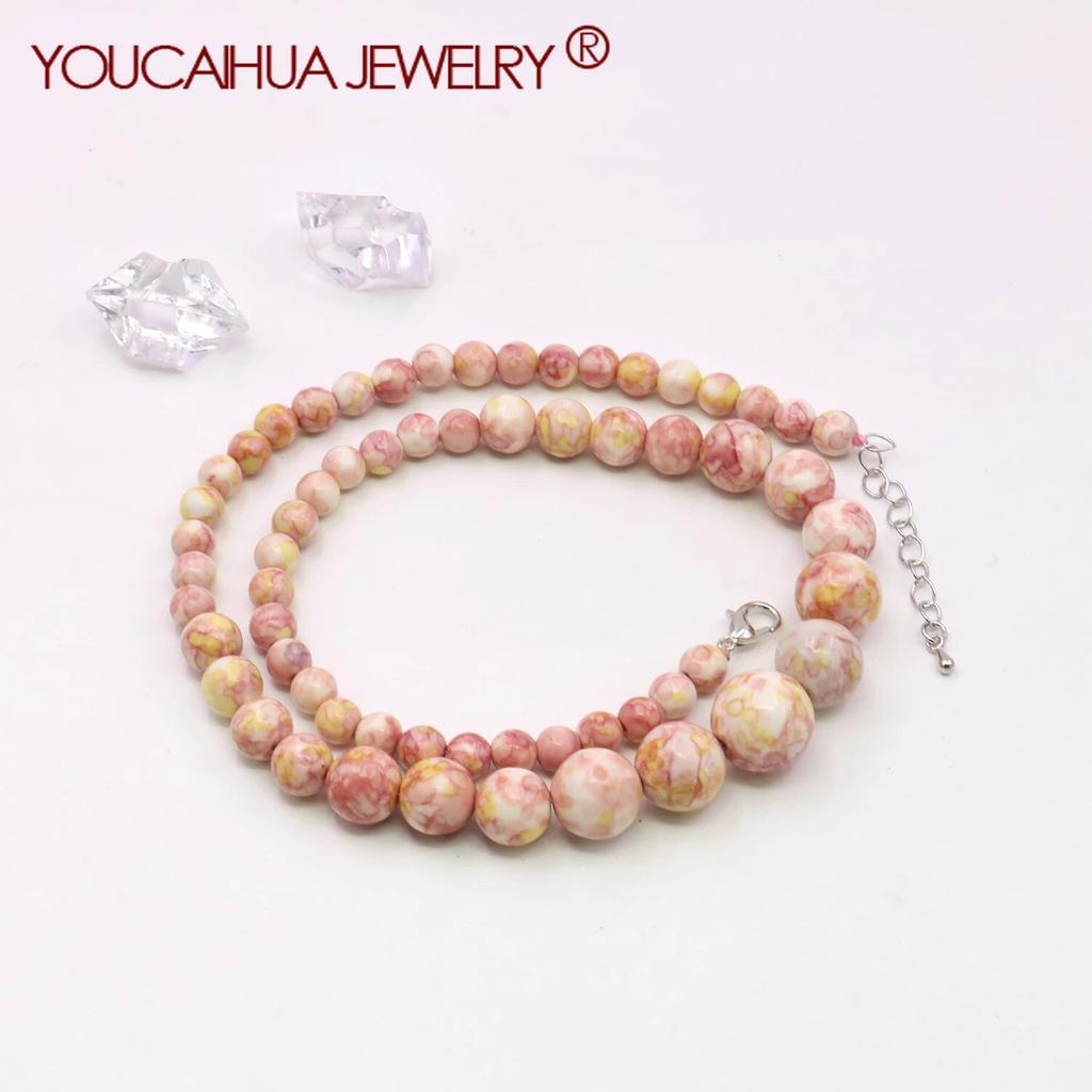 Colar de contas de arco-íris redondo rosa amarelo de 6-14 mm, colar de torre, joias para pescoço, corrente de extensão de 5 cm, presentes para amantes e amigos