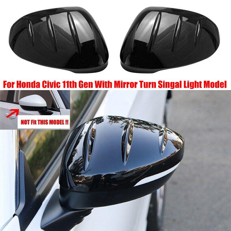 1 par de capa de espelho retrovisor de carro preto brilhante com fita adesiva para Honda Civic 11ª geração 2022-up