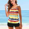 Women's Shoulder Strap Swimsuit Same Tone Stripes Print Bikini Tankini Swimsuit