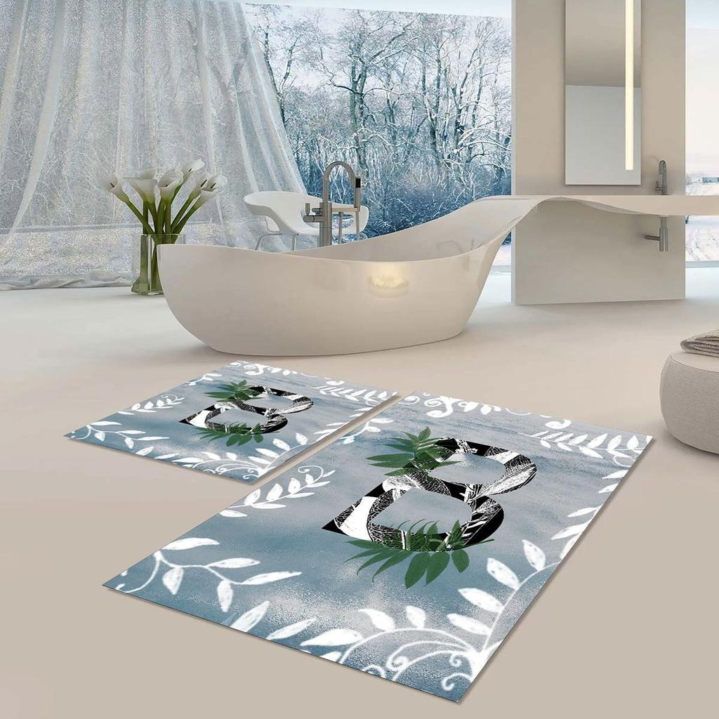 Tapete de banho lavável à máquina, base antiderrapante, lavável, resistente a manchas de poeira, conjunto de 2 tapetes de banho B1047