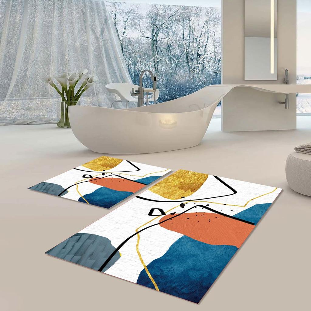 Tapete de Banho Lavável na Máquina Base Antiderrapante Lavável Resistente a Pó e Manchas Conjunto de 2 Peças Conjunto de Tapetes de Banho B1054