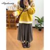 Saia plissada estampada da moda com design de fenda lateral para roupas femininas