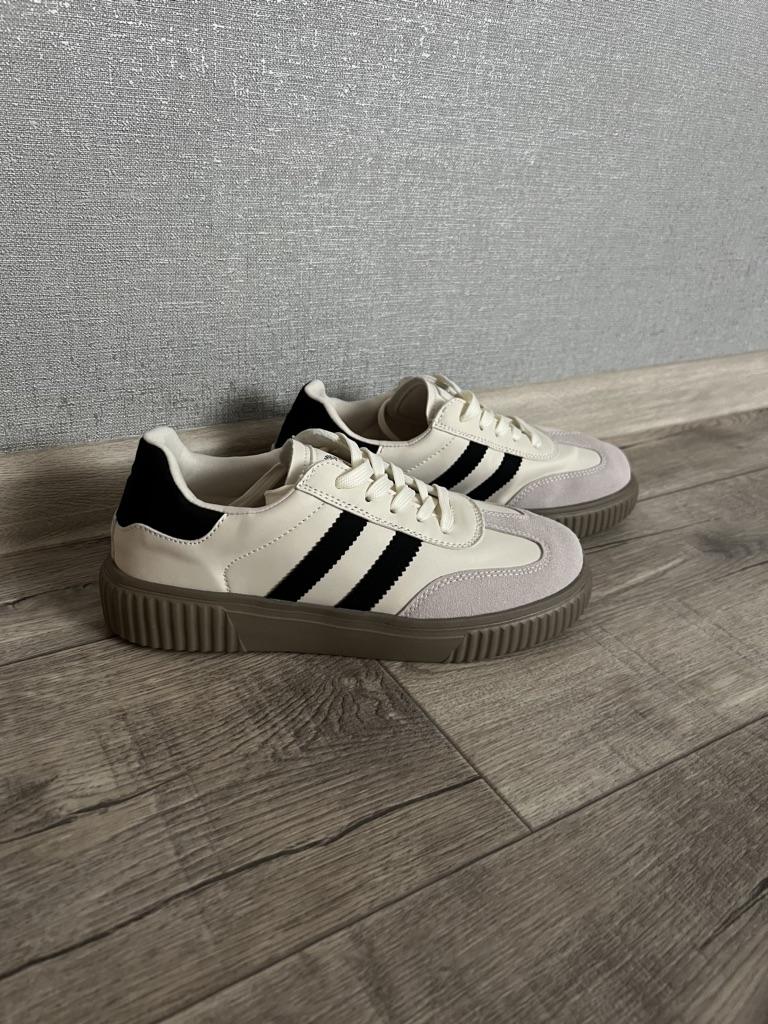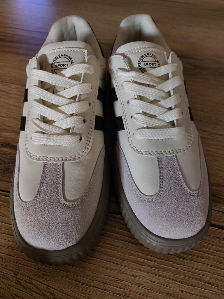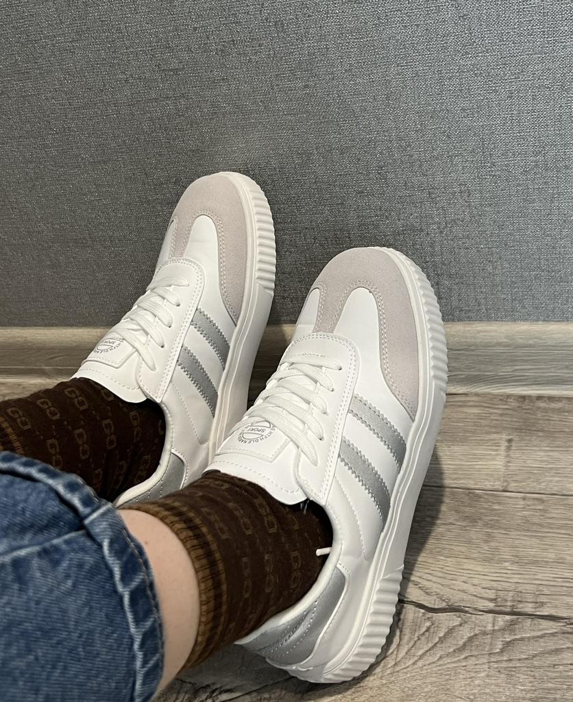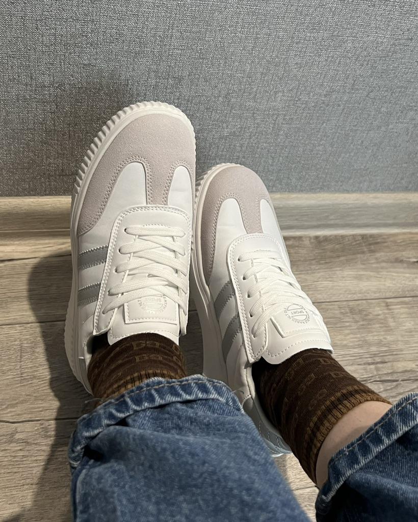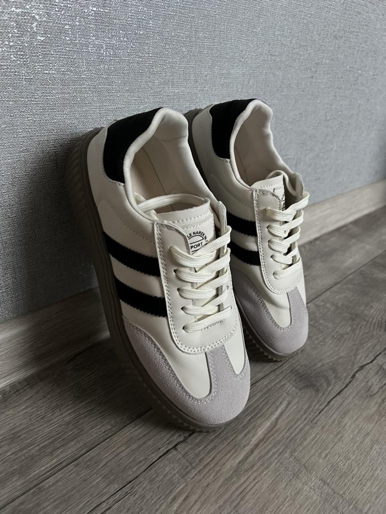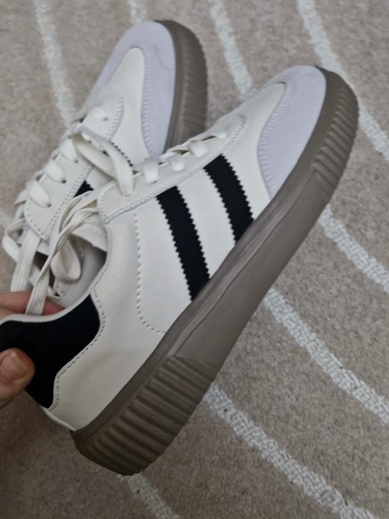 Tênis Algo no estilo do samba da Adidas 🤔 Eles parecem bem. Há uma inserção de camurça. A alfaiataria é boa. Não há cola visível. Há um cheiro. Das desvantagens, peguei o tamanho 38 para o meu pé de 23,5 cm. Resultado: dei para um amigo com tamanho de 40 pés😵💫. Quase certo para ele. Diz que são confortáveis, a sola é leve. Parece que a marca mudou para uma tabela de tamanhos diferente ou começou a fabricar tamanhos maiores