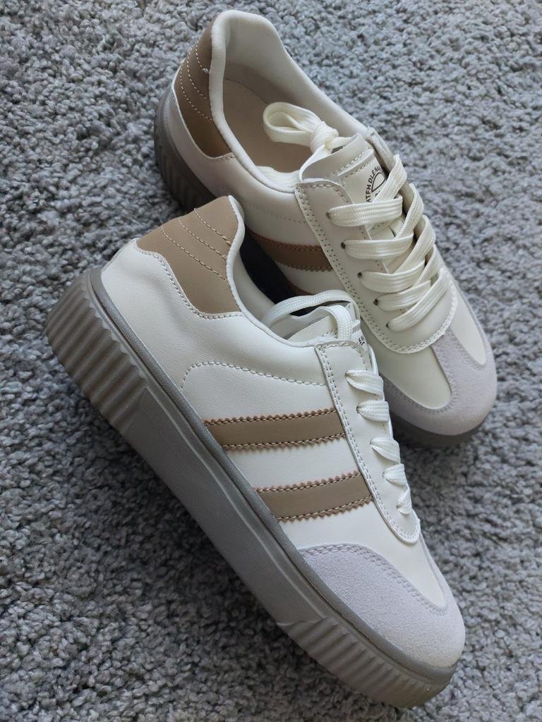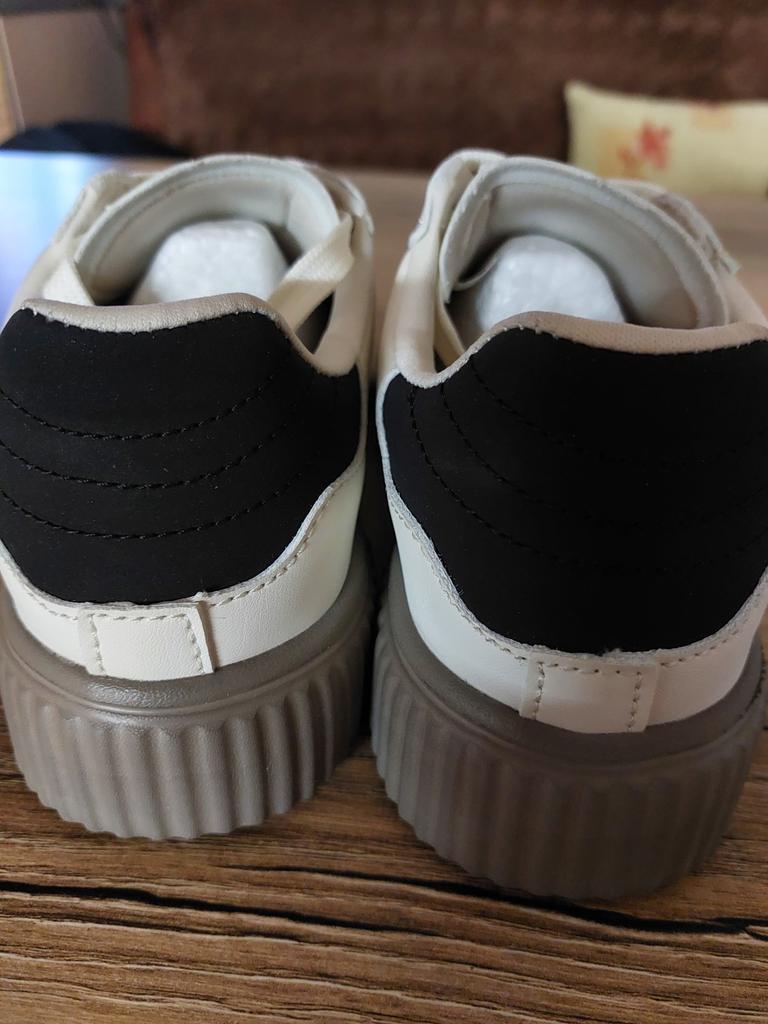 Tênis legais para todos os dias! A qualidade é boa, o preço é agradável🫶🏼 Tamanho 39 serve 38, muito confortável. Confortável e macio por dentro. A sola é flexível. Eles ficam estilosos e bonitos nas pernas, estou feliz💖