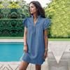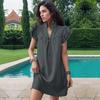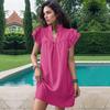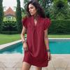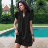Vestido feminino de verão de cor sólida com gola em pé e manga de folha de lótus solta