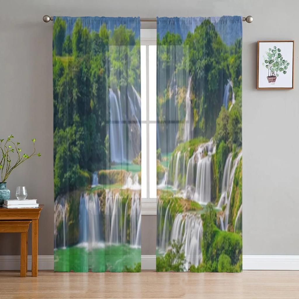 Cortinas transparentes de paisagem de cachoeira para sala de estar, janela, voile transparente, cortina de tule, quarto, decoração de casa