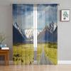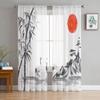 Cortinas de tule com pintura chinesa, floresta, flores, montanha, para quarto, moderna, voile, decoração de casa, janela