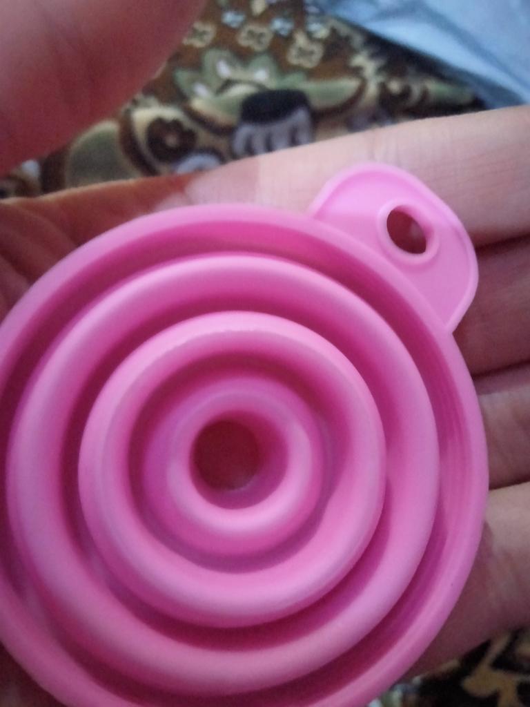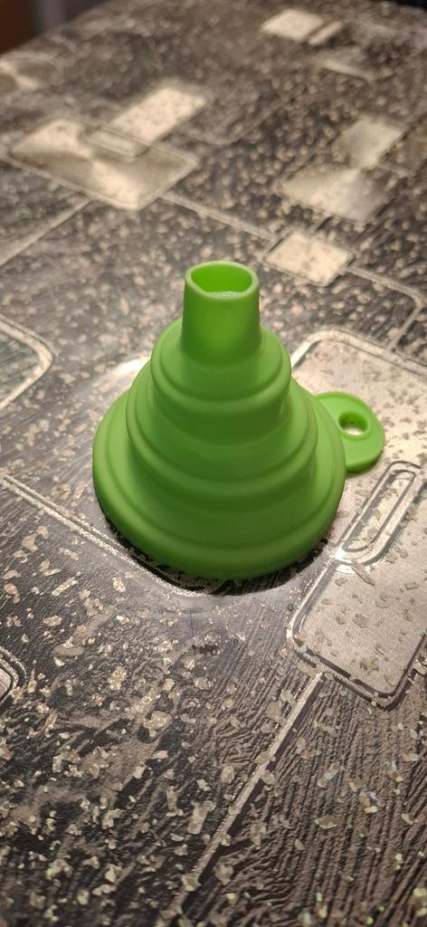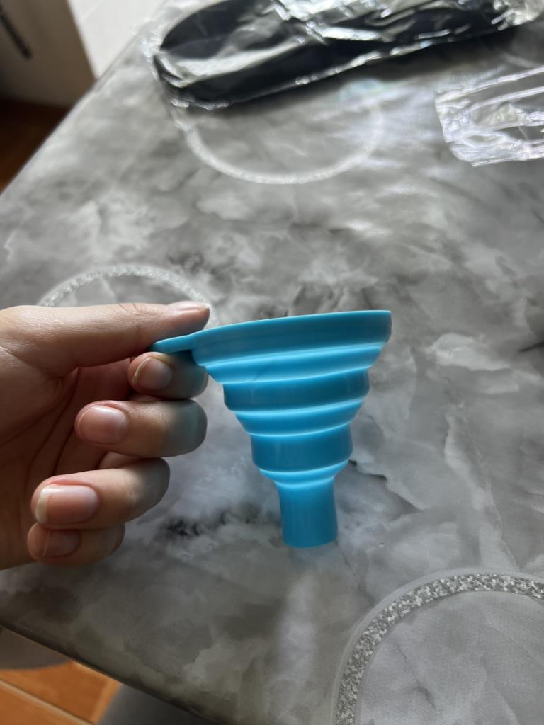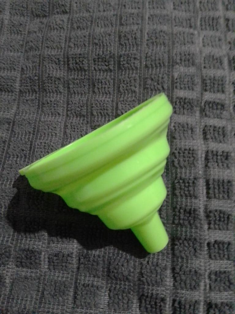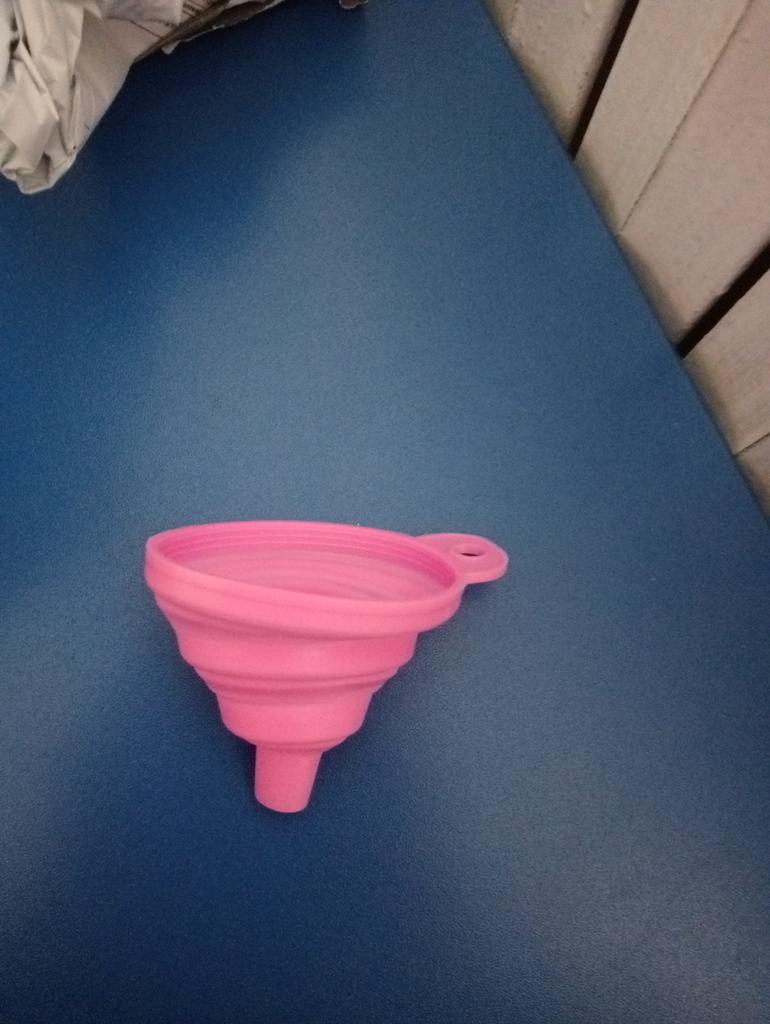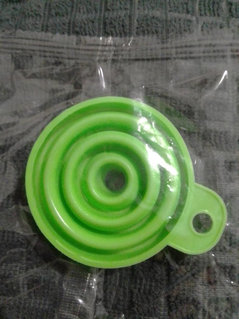 Funil pequeno e dobrável. A qualidade é boa, bastante resistente