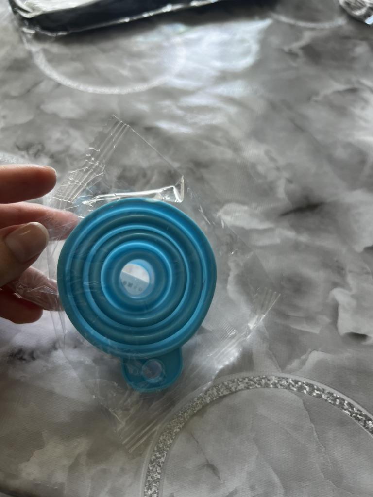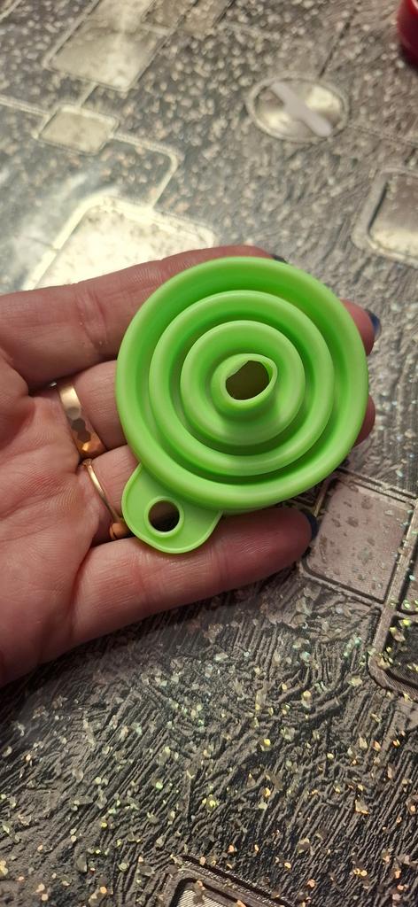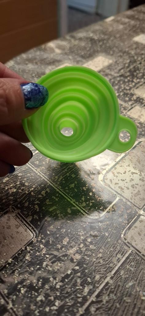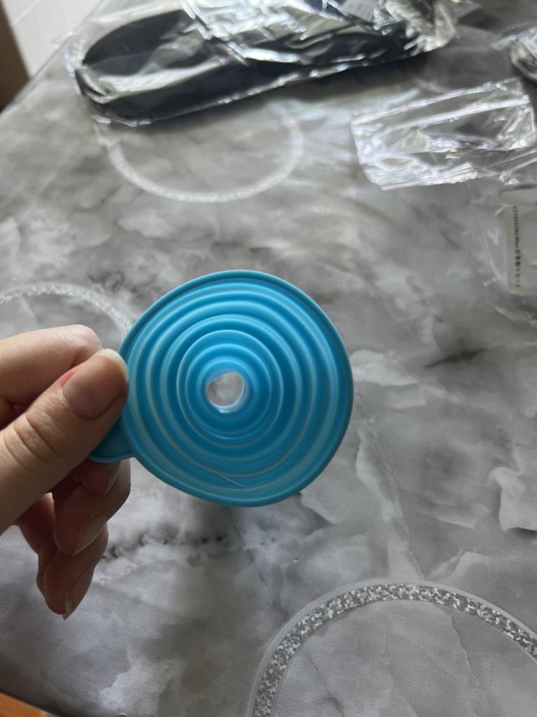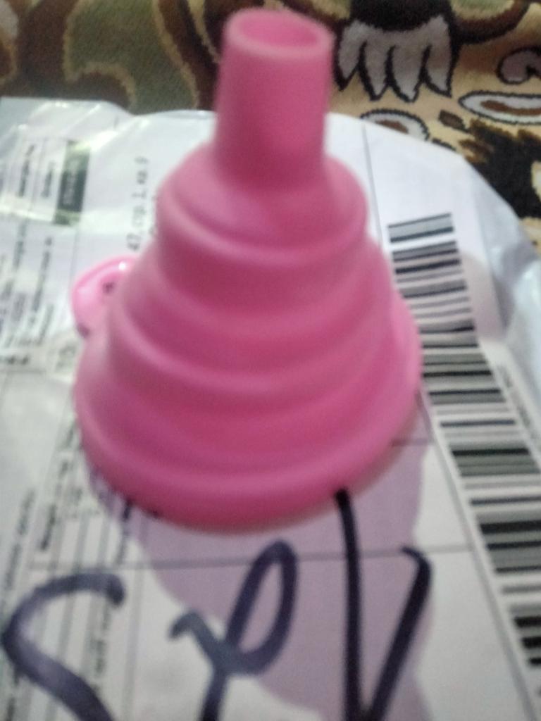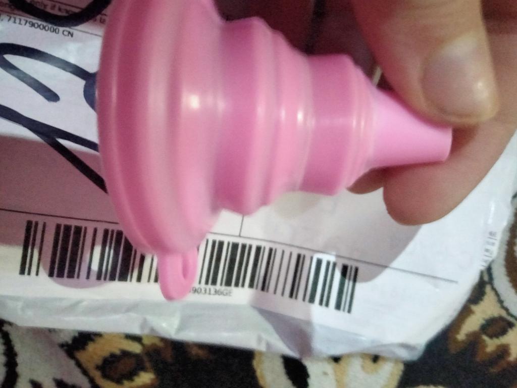Funil pequeno e dobrável. A qualidade é boa, bastante resistente