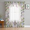 Cortina de tule de coelho de grama de Páscoa para sala de estar Cortina de saia transparente para cozinha Cortinas de janela de quarto