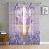 Cortinas de tule vintage com espiga de trigo lavanda para sala de estar Cortina de janela transparente de voile de chiffon para quarto