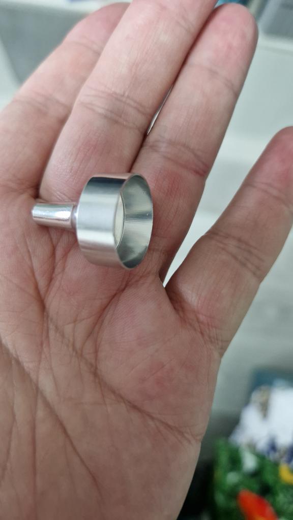 O funil é pequeno, exatamente o que era necessário. Para encher os frasquinhos.
