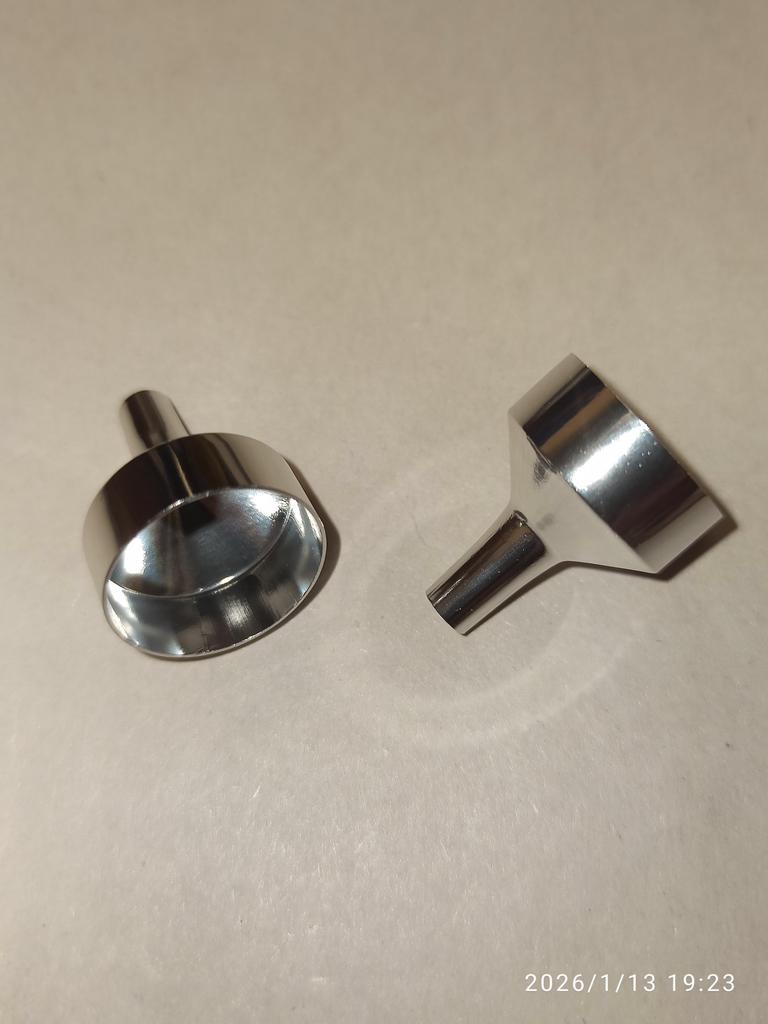 Dois funis para frascos de perfume. Já experimentei, na hora certa.