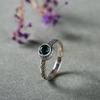 Anel de presente de aniversário retrô Huitan para mulheres com folhas vintage gravadas com uma pequena pedra de zircônia cúbica verde anéis de dedo