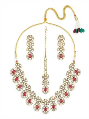 Estele Gehena Gold Plated Traditional Stylish Fancy Kundan Necklace Jewelry Set For Women