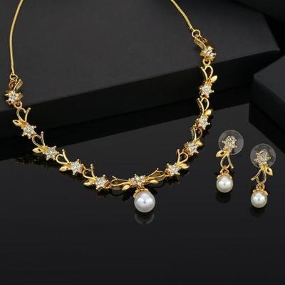Conjunto de colar Designer com zircônia floral e pedras brancas, banhado a ouro e banhado a ródio, para mulheres