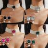 Gargantilha com pingente de cristal quadrado para joias femininas