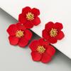 E popular multi-camadas moda temperamento flor brincos pintura simples feminino liga prata pino