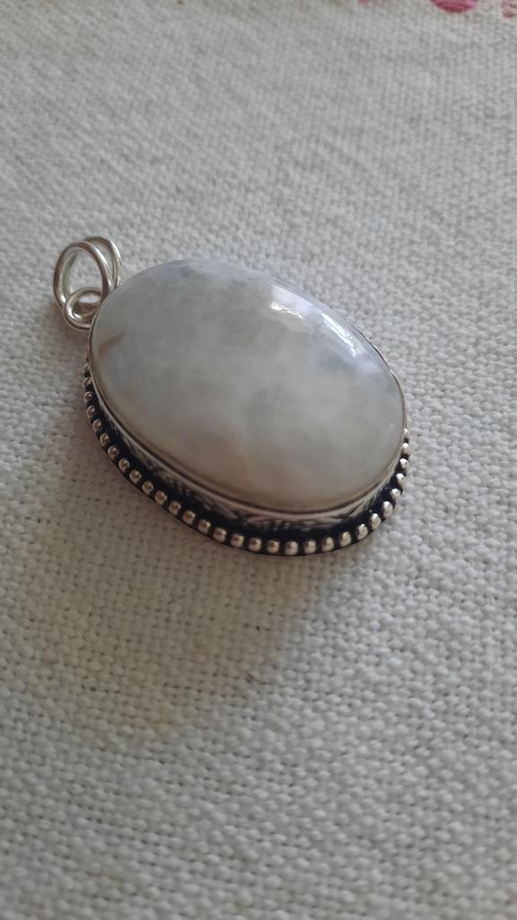Gema Pedra da Lua Arco-Íris Natural Pingente Prata Esterlina 925 2,25" i0H36