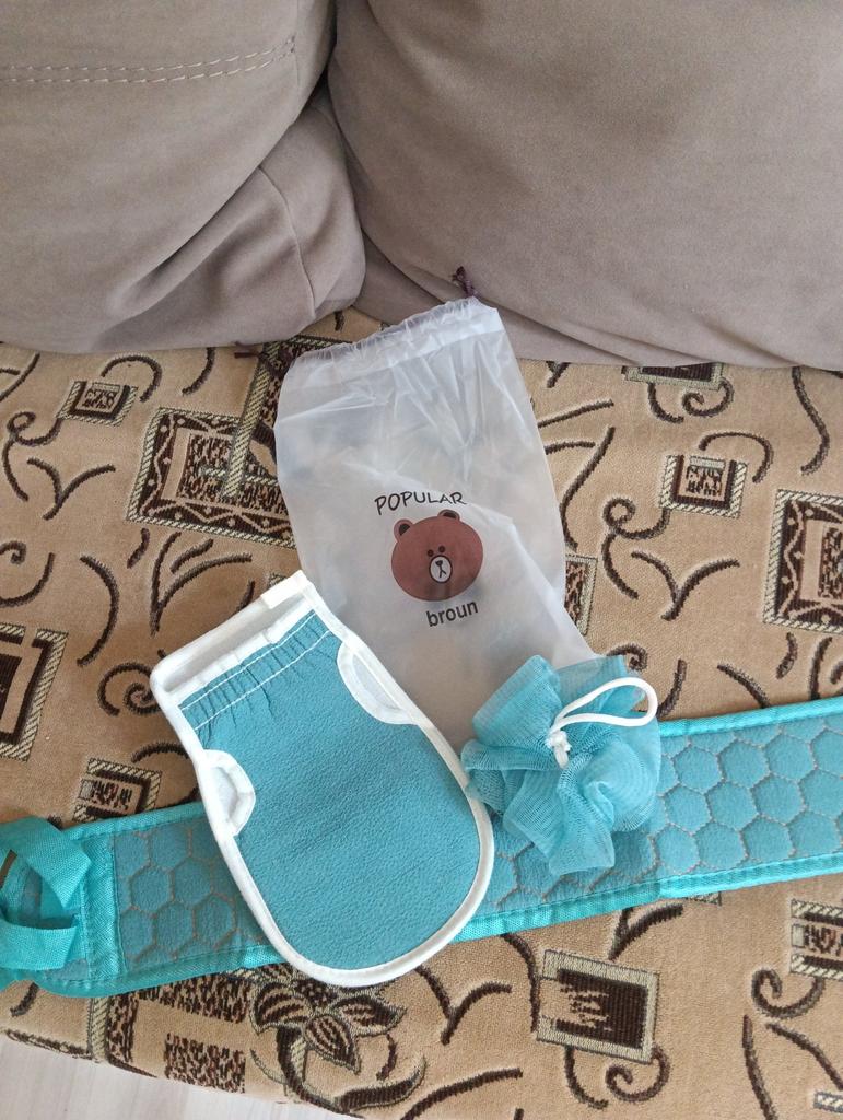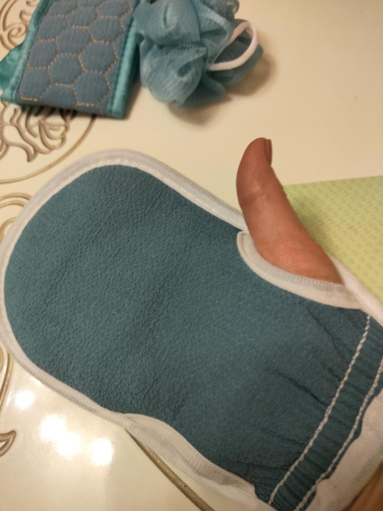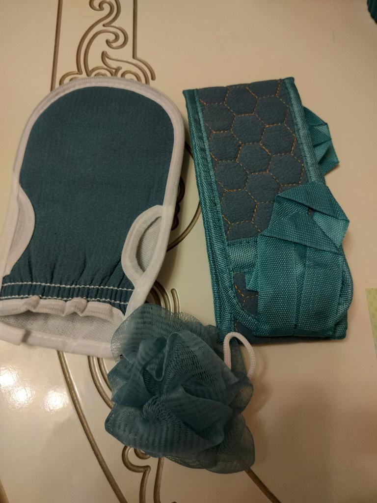 A luva é boa, a toalhinha é estreita e a segunda toalhinha é um pouco pequena (para crianças).