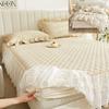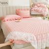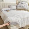 Colcha de renda estilo princesa, quatro estações, peça única, grossa, acolchoada, lavável, antiderrapante