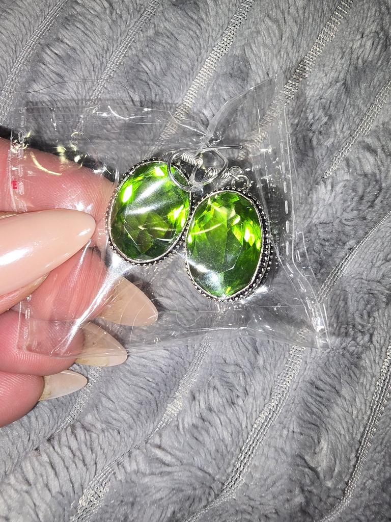 Brinco de presente de prata esterlina 925 feito à mão com pedra preciosa de peridoto natural 1,42" f8c28