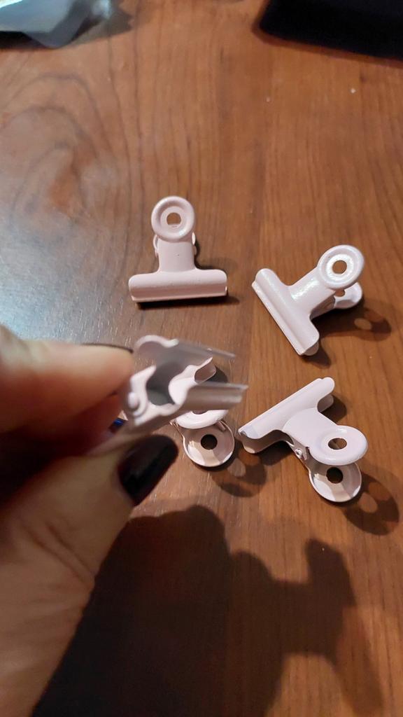 Eles seguram bem. Metal. Chegaram 5 peças. em um saco. Não há defeito. Vou pedir outra cor. Obrigado 🙏