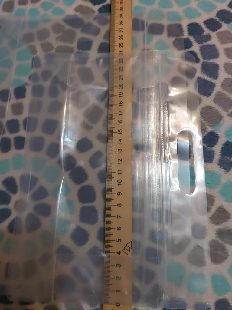 Uma bolsa zip bem pequena, nem sei o que colocar dentro! Mas é grosso, acho que cabe uma esponja de banho.