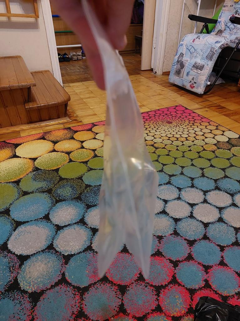 O produto chegou em três semanas em bom estado, gostei do tamanho, pensei que seria menor. A sacola de comida não tem cheiro desagradável, é muito densa e vale o dinheiro que gastei.