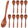 Colher de madeira, leve e forte, cor natural da madeira, toque suave, confortável de usar.