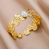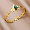 Pulseira de aço inoxidável com pedra verde artificial para mulheres, bracelete de cor dourada, acessórios de joias vintage femininas