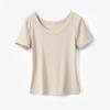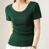 Camiseta feminina gola em U manga curta solta cor sólida top