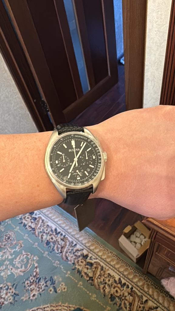 BULOVA Edição especial Moon Apollo Lunar Pilot Chronograph Black Dial Quartz 96B251 Relógio masculino