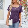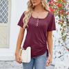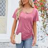 Moda Casual Feminina Sexy Cor Sólida Botão Decote U Top Cordão