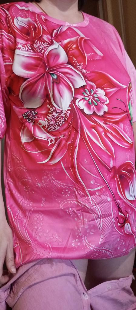 T-shirt muito bonita e floral adequada para usar nos primeiros dias de menos calor