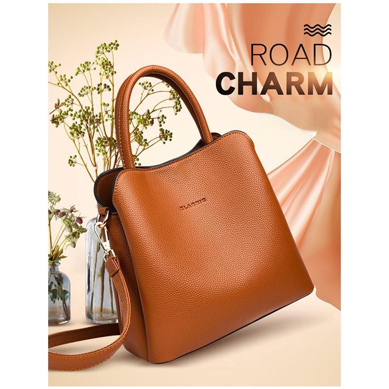 Bolsa de ombro de couro sintético genuíno de luxo, bolsa de mão de cor sólida para mulheres, bolsa de mensageiro feminina