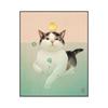 Arte de animais engraçados adoráveis, gato brincando com peixes na água, pôster, pinturas em tela, impressão, arte de parede, imagem para casa