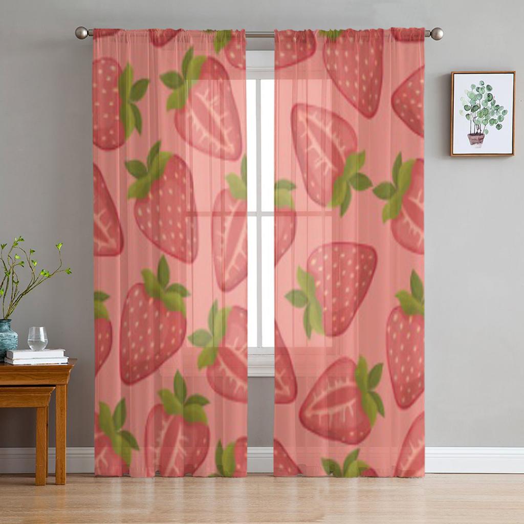 Cortinas de chiffon luxuosas rosa morangos para decoração de sala de estar, quarto, janela, voiles, cortina de tule