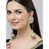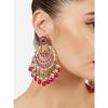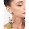 Brinco étnico Kundan com contas de cluster verde e rosa e pingente de ouro amarelo para mulheres
