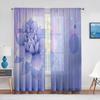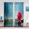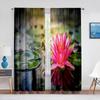 Lotus Flower with Pinkish Petals Water Lily Green Tulle Curtains for Living Room Bedroom Kitchen Chiffon Sheer Curtain Drapes